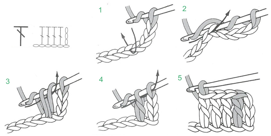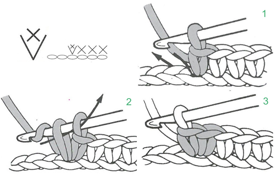 Ve slovně psaných instrukcích se nejspíš setkáš s pojmem „rozháčkuj“ - např. rozháčkuj každý druhý sloupek. Rozháčkovat, znamená také uháčkovat 2 sloupky do jednoho oka a někdy může mít i zkratku roz.