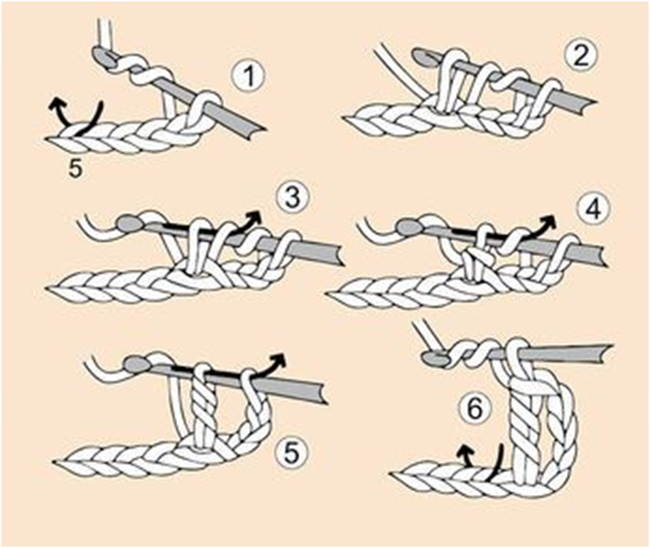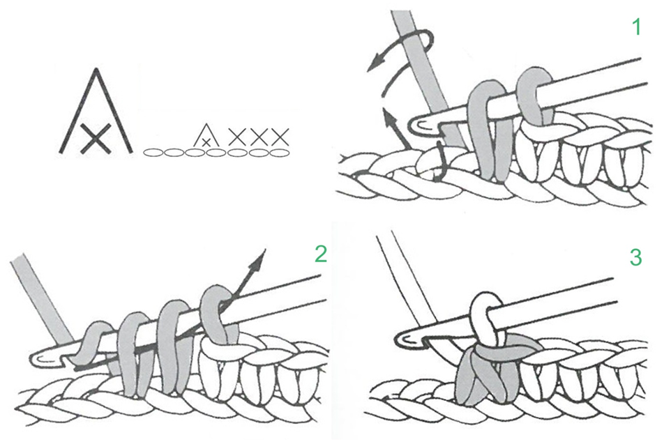 Zkratka 2tog pak bývá doplněna o druh sloupku, který se má sháčkovat. 2SCtog pak znamená 2 single crochet together, tedy sháčkuj dohromady 2 krátké sloupky.